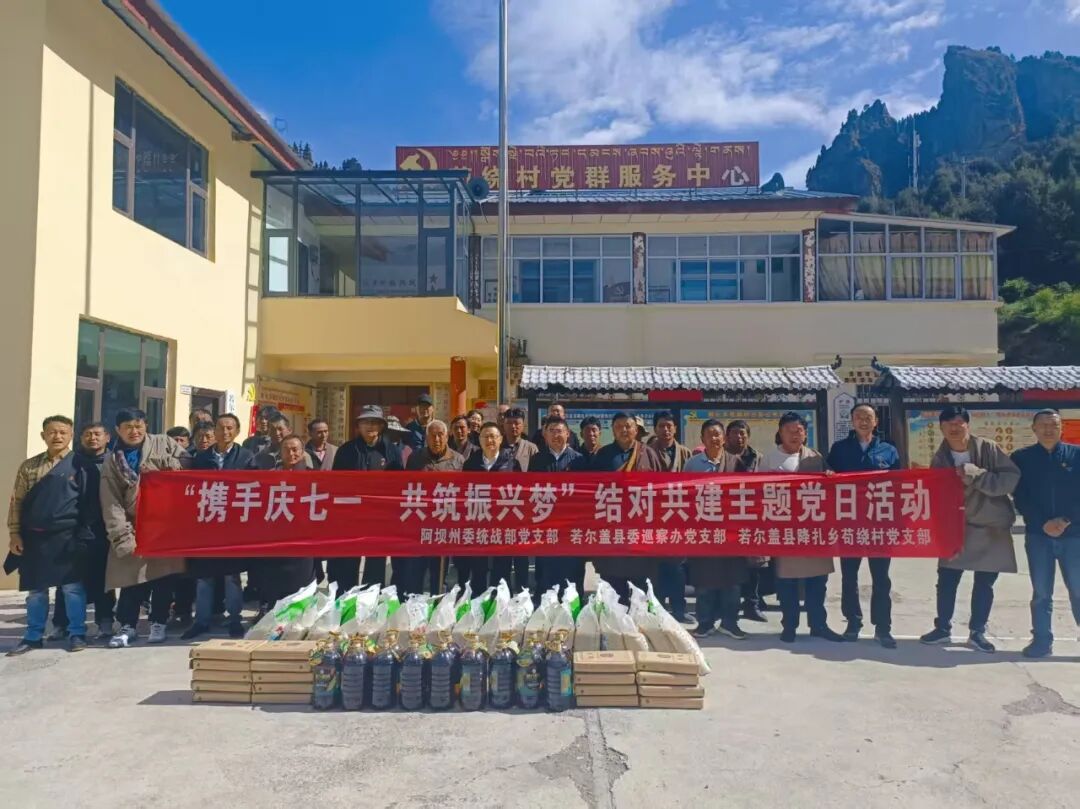为庆祝中国共产党成立104周年,扎实推进中央八项规定精神学习教育走深走实,全面落实省委十二届七次全会精神,激励党员坚定理想信念、牢记使命担当、凝聚奋进力量。7月1日,州委统战部党支部与若尔盖县委巡察办党支部、降扎乡苟绕村党支部开展“携手庆七一,共筑振兴梦”结对共建主题党日活动。