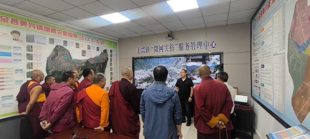 走进综治阵地,看数智大治理。走进美兴镇综治中心,参观“微网实格”数字地图、基层社会治理的智慧化平台和精细化管理模式。在指挥调度大厅的巨幅电子屏幕上,实时跳动的数据和动态更新的地图,清晰展示着全镇各个网格的人员信息、安全隐患、矛盾纠纷等情况。工作人员现场演示如何通过平台快速响应群众诉求,联动各部门高效解决问题。通过实地参观和讲解,僧人们深刻感受到基层治理体系和治理能力现代化为社会和谐稳定带来的保障。