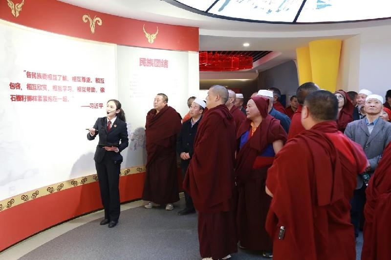 宗教人士有序参观了法治教育基地的宪法精神、民族宗教法规、民族团结进步等主题展区,并通过多媒体视频及互动设备,直观了解依法管理宗教事务、维护民族团结的重要意义,一幅幅反映各民族交往交流交融的珍贵画面,展现了“中华民族一家亲”的深厚情谊,引发宗教人士的强烈共鸣。