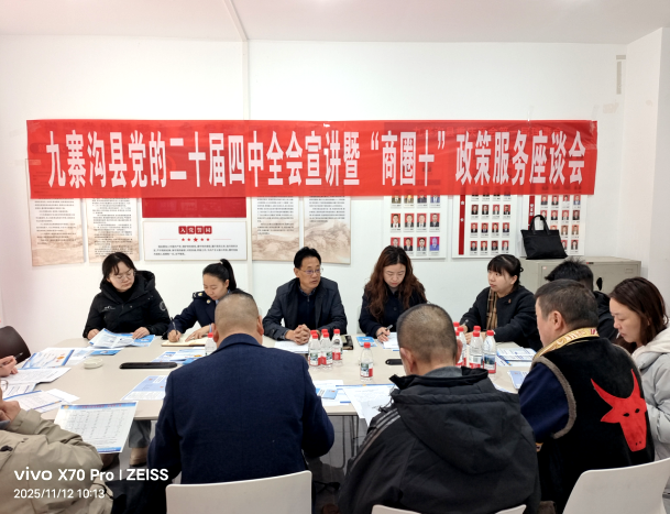 专题组织学习了党的二十届四中全会精神,发放金融服务指南、税收优惠政策汇编等宣传资料50余份,进一步凝聚发展共识。通过此次“商圈+”政策服务座谈活动,不仅帮助企业吃透用足各项支持政策,更坚定了市场主体扎根发展的信心。下一步,九寨沟县将持续以企业需求为导向,常态化开展“商圈+”系列服务活动,推动政策直达快享、难题精准破解,为县域经济高质量发展注入强劲动力。