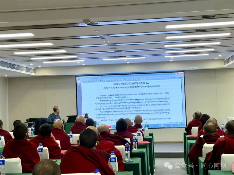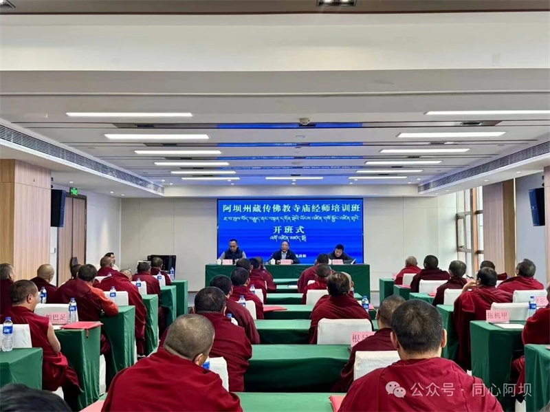 为深入贯彻落实新时代党的治藏方略和习近平总书记关于宗教工作的重要论述,切实加强藏传佛教界代表人士队伍建设,2025年12月15日至21日,在省委涉藏办精心指导下,阿坝州委统战部举办“阿坝州藏传佛教寺庙经师培训班”,来自全州各地的80名寺庙经师齐聚参训,在为期7天的培训中收获知识、拓展视野、增进认同。