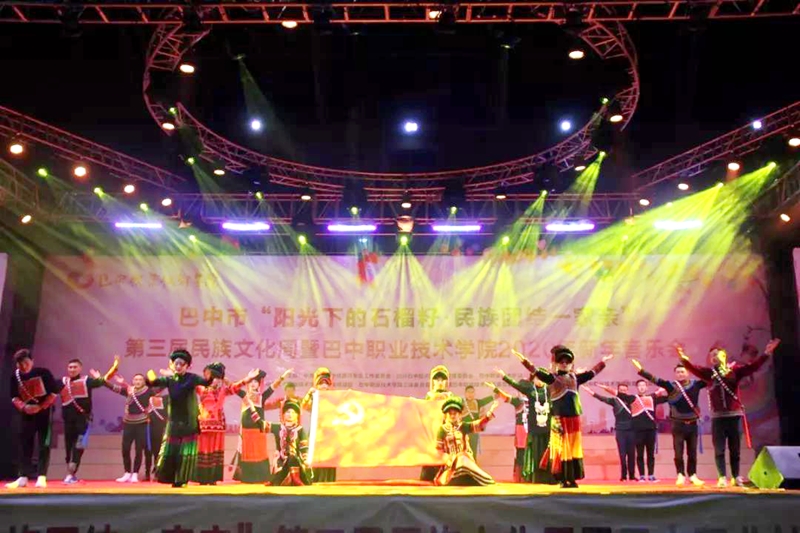 为深入贯彻落实习近平新时代中国特色社会主义思想和党的十九届四中全会精神,深入推进民族团结进步事业发展,12月20日,由巴中市经开区党工委、管委会主办,经开区党工委统战部、巴中职业技术学院联袂承办的巴中市“阳光下的石榴籽·民族团结一家亲”第三届民族文化周活动,在巴职院体育馆举行。