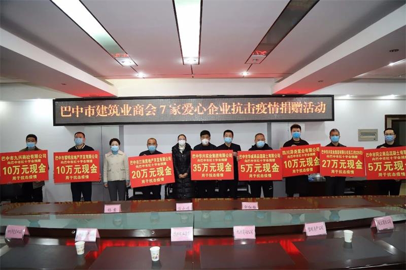 2月12日,巴中市工商联兼职副主席杨天淑率市建筑业商会7名企业家开展捐赠活动,向市红十字会捐款122万元,用于抗击新冠肺炎疫情。市人大副主任、工商联主席任小娟参加活动。
