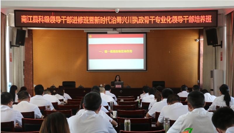 近日,南江县委常委、统战部部长吴城蓉为南江县科级领导干部进修班暨新时代治蜀兴川执政骨干专业化领导干部培养班全体学员作了《中国共产党的统一战线基本理论和政策》专题辅导报告,详细解读了新时代统一战线工作的工作原则、重要意义与落实方法。