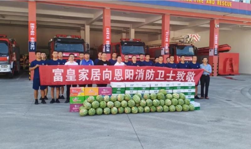 慰问现场,巴中市富皇家具有限公司向消防官兵送去西瓜、矿泉水、方便面、防暑药品等价值10000余元的慰问物品,对官兵们常年奋战在灭火救援前线,时刻将人民的生命财产放在第一位,冲锋在前,保护群众生命财产安全表示敬意和感谢。消防官兵们表示,将立足本职、恪尽职守,打造消防铁军,创造良好的消防安全环境。