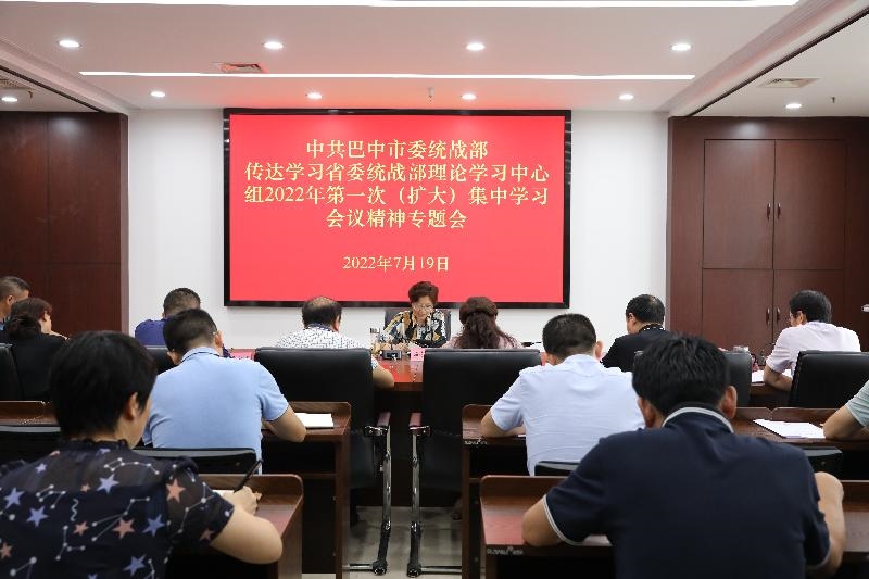 7月19日上午,巴中市委统战部召开专题会,传达学习省委统战部理论学习中心组2022年第一次(扩大)集中学习会议精神。市委常委、统战部部长温奇志主持会议并讲话。