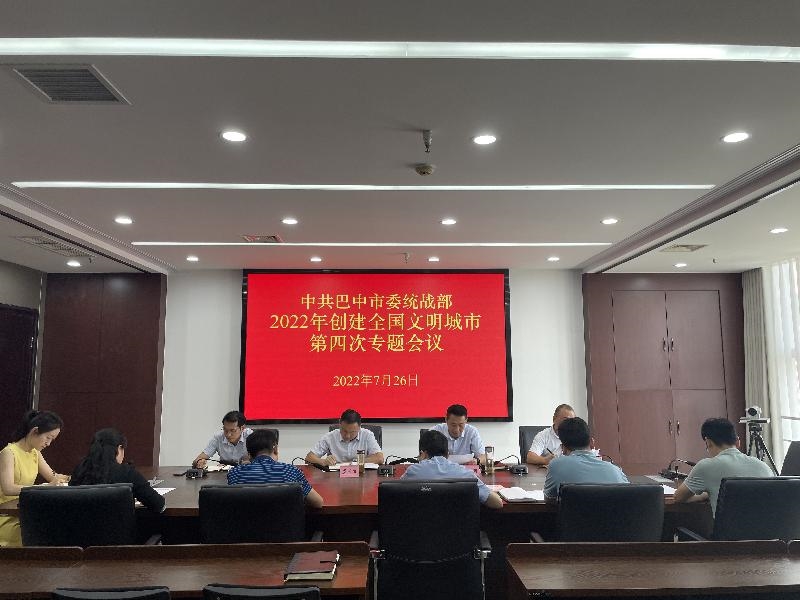 7月26日,市委统战部召开2022年第四次创文工作专题会,传达学习巴中市创建第七届全国文明城市工作推进(第二季度)电视电话会议精神,安排部署包保社区迎检测评和第三季度创文重点工作。