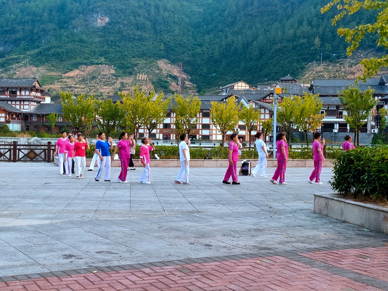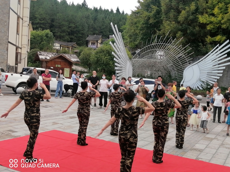 东乡街道湖山社区“中国红”健身队成立于2022年初,固定成员25名,定期在红军公园广场开展活动,免费指导辖区居民学习武术健身操。2022年4月,健身队集中排练武术健身操《土家余门拳》,并引导带动各族群众共同训练,积极展现省级非遗文化风采。同时,协助社区多次开展“忆红军·强体魄·铸雄魂”活动,以游学、表演和歌曲等形式,弘扬各民族共有精神文化,营造“民族团结一家亲、宣汉儿女心连心”社区氛围。