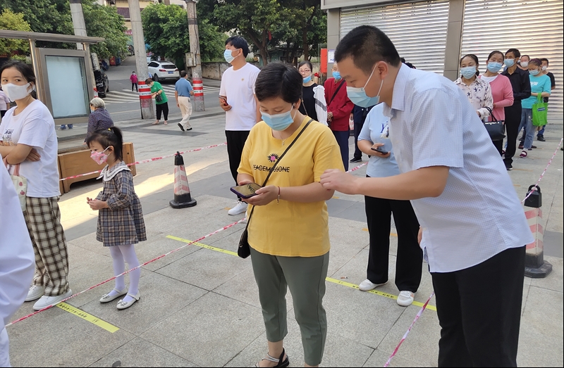检测现场,县委统战部干部职工积极配合辖区医护工作者、公安民警引导居民有序测温、登记、扫码、检测,各个环节人员配合密切,做到规范、科学、快速有序开展登记和检测,保证检测人数底数清,情况明。