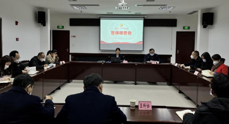 近日,恩阳区委常委、统战部部长、区总工会主席刘素娟向全区统战群团系统干部职工宣讲党的二十大精神。区委统战部及群团部门班子成员参加宣讲会。