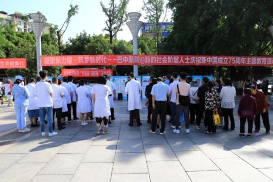 为充分发挥新的社会阶层人士专业优势,切实增进群众健康福祉,提高社会健康水平,按照全市“凝聚新力量·筑梦新时代——巴中新阶@新的社会阶层人士庆祝新中国成立75周年”主题教育活动安排部署,5月15日,巴中市新联会携手巴中博济医院、巴中仁和医院、巴中鸿福妇产科医院、巴州华龙医院、巴州济民医院、四川明正司法鉴定所等6家会员单位30余名医疗工作者走进巴中新天地广场,为广大群众提供医疗健康公益服务。市新联会轮值会长李毅在启动仪式上致辞,市新联会会员、巴州华龙医院副院长王应代表服务团队发言,市新联会市级班子成员参加。