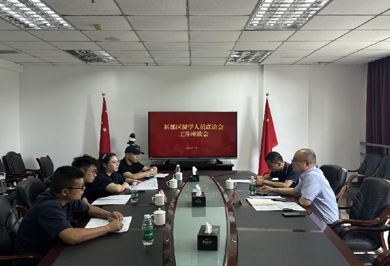 7月22日,新都区留学人员联谊会工作座谈会在区委统战部会议室召开。区委统战部副部长、区工商联党组书记李茹涵,区留联会会长冯翰铭参加会议。