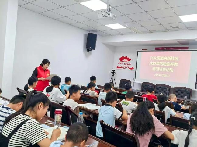 二是资源巧链接,纾困“有温度”。兴新社区通过统战成员协同走访,精准识别暑期托育需求。社区党委发挥统战优势,联动党外知识分子、新阶层人士提供专业支持,并依托统战平台招募5名大学生志愿者,开设托管班服务50名儿童,化解双职工家庭难题。