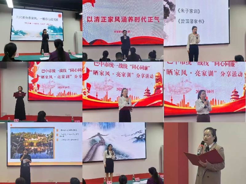 为深入贯彻落实习近平总书记关于注重家庭家教家风建设的重要论述精神,充分发挥统一战线在弘扬优良家风、促进社会和谐中的积极作用,10月17日,巴中市委统战部组织开展巴中市统一战线“同心同廉—晒家风·亮家训”分享活动。市委统战部、市工商联机关干部职工及各民主党派、无党派人士代表共40余人参加活动。
