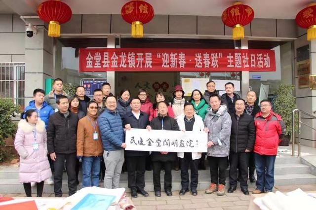 2020年12月31日,民进金堂总支、民进金堂开明书画院联合县委老干局(蓉城金秋志愿服务金堂中队)到金堂县金龙镇金龙小学、金龙中学、骑龙社区开展送教送文化活动。民进成都市委副主委胡方廷、出版支部副主委高义程,以及民进机关相关处室人员特邀出席活动;总支主委、县政协副主委张立诚,原县政协主席李再发参加此次活动。