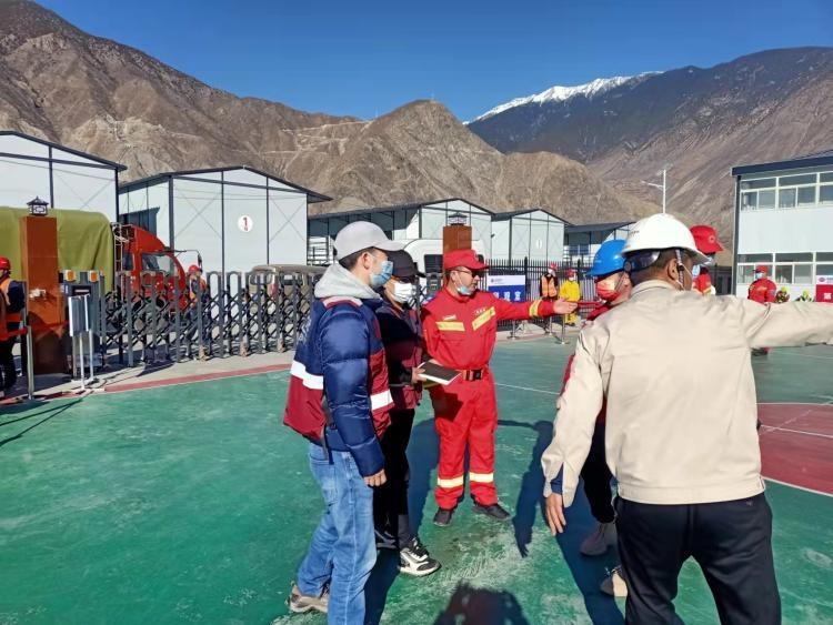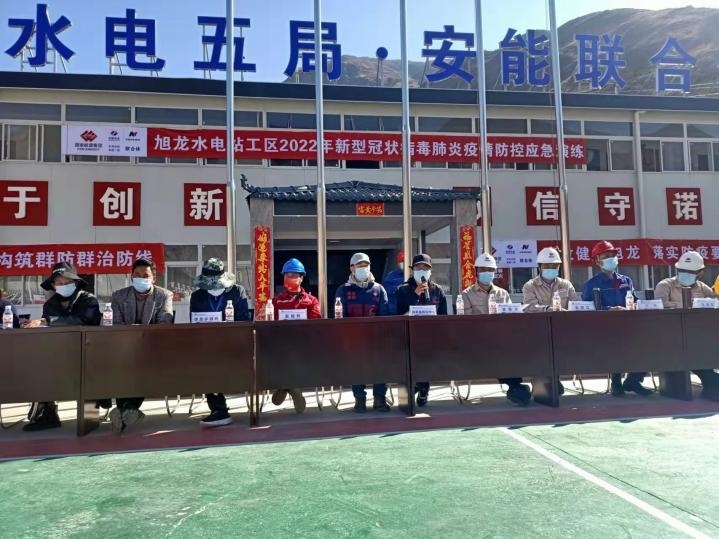 在旭龙水电站,观摩了工区组织的“2022年新型冠状病毒肺炎疫情防控应急演练”,模拟了从体温监测发现发热病人到体温复测、患者隔离、转运以及消毒等一系列环节。“传帮带”医生与工地领导一起研讨疫情防控措施的落实细节,对演练过程中存在的问题做了专业点评。