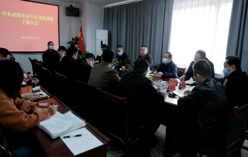 4月6日,金牛区委常委、统战部部长任继斌主持召开区委统战部干部职工大会,传达省市领导关于本轮应对新冠疫情重要指示和省、市、区新冠疫情防控指挥部有关会议精神,安排部署全区统一战线疫情防控工作。