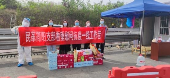 4月12日,民革简阳市支部主委曹强带队,到G76厦蓉高速出口简阳收费站交通卡点,看望慰问抗疫一线工作者,并为抗疫工作者送去了苏打水、火腿肠等慰问品。