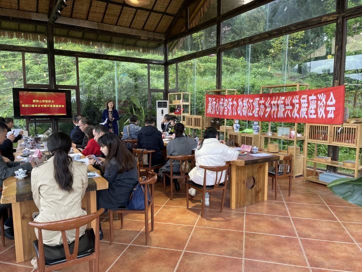 在茶溪谷,刘智慧详细了解了茶叶种植生产情况,对茶溪谷负责人李勇投身乡村振兴和企业发展所取得的成绩给与高度肯定。座谈会上,李勇重点介绍了茶溪谷下一步工作思路,川大侨联副主席高鸿、四川头条茶业有限公司董事长杨司南、成都九如村茶叶有限公司总经理何旭从国际国内茶叶产业现状、消费需求等情况进行了讲解分享,对下一步茶溪谷的发展也提出了各自的建议。