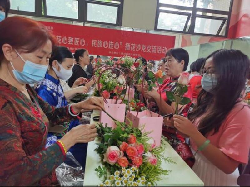 5月6日,锦江区在成龙路街道香樟社区组织开展“花心致匠心·民族心连心”插花沙龙交流活动,社区20余名各民族群众参与。