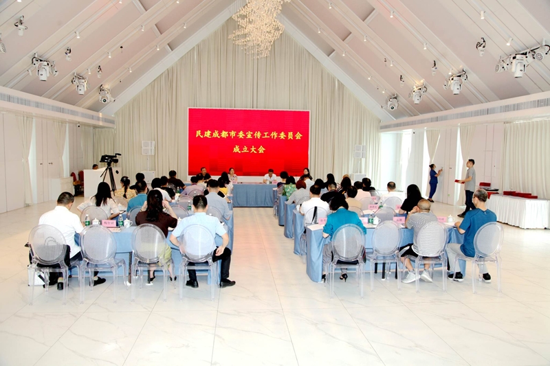 6月30日下午,民建成都市第十五届委员会宣传工作委员会成立大会在郫都区印象泰和园宴会艺术中心召开。民建成都市委会秘书长钟琪、一级调研员杨洁、宣传工作委员会主任、副主任以及全体委员40余人参加会议。会议由宣传工作委员会秘书长陈德军主持。