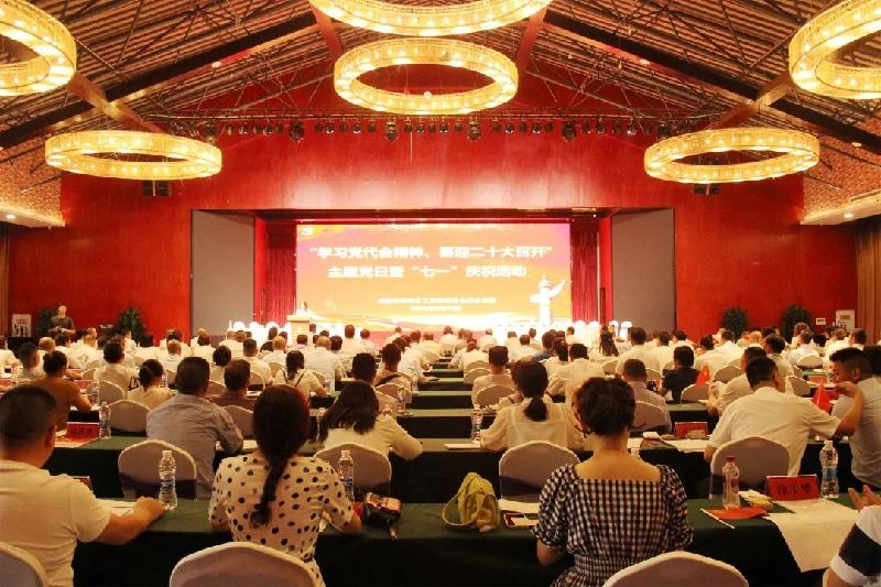 为隆重庆祝中国共产党成立101周年,喜迎党的二十大胜利召开,深入学习习近平总书记来川视察重要指示精神,教育引导全体党员牢记嘱托、踔厉奋发,全面建设践行新发展理念的公园城市示范区,2022年6月30日,新津区工商联商协会综合党委隆重举行“学习党代会精神、喜迎二十大召开”主题党日暨“七一”庆祝活动。各商协会党组织全体党员、入党积极分子,各商协会会长、秘书长共计200余人参会。区委组织部副部长、区委“两新”工委书记杨波,区委统战部副部长、区工商联党组书记胥福全等出席会议。