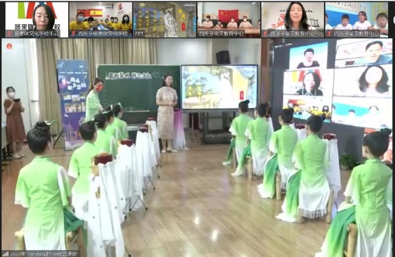 为进一步弘扬中华传统文化,展示天府文化魅力,7月2日,成都市盐道街小学卓锦分校以云课堂连线西班牙马德里哆来咪文化学校和西班牙华文教育中心学校,开展2022年“Panda成都·华教云课堂”之“童心同唱 歌声悠扬”海外华文教学活动。本次活动由成都市人民政府侨务办公室、中国驻西班牙大使馆、中国驻巴塞罗那总领馆主办,成都海外联谊会、成都市锦江区侨台办、成都市锦江区教育局承办,成都市盐道街小学卓锦分校、西班牙马德里哆来咪文化学校和西班牙华文教育中心学校协办。