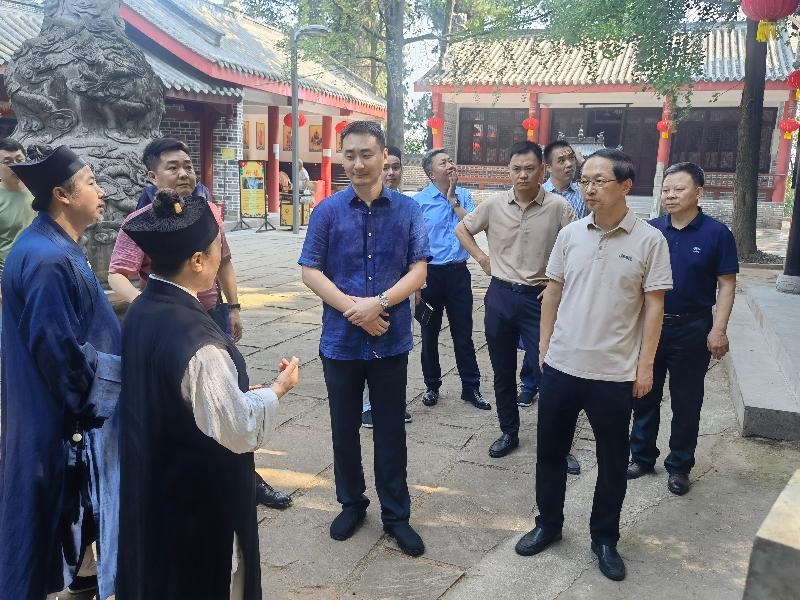 7月5日,省民宗委副主任胡勇一行赴新津区调研老君山道观方丈升座工作。省民宗委佛道伊处处长杨忠宇,市民宗局副局长谯文成,省道协秘书长马古格,市道协秘书长甘长春,区委常委、统战部部长叶尚敏及省市区相关处室(部门)负责人参加调研。