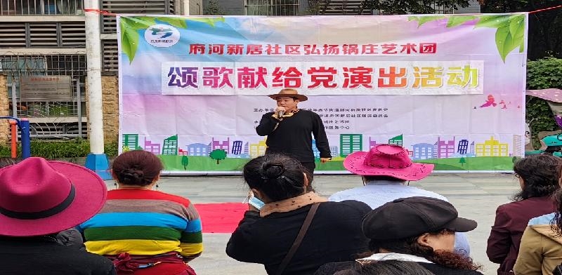 西华街道府河新居社区开展宣传党的二十大精神活动暨颂歌献给党演出活动,西华街道党群办、府河新居社区、成都金牛黑水籍流动党员党支部、社区弘扬锅庄艺术团、社区居民等60余人参加活动。活动现场,来自社区弘扬锅庄艺术团男女合唱《党啊亲爱的妈妈》《颂歌献给亲爱的党》把活动推向高潮,藏族姑娘白玛独唱《一个妈妈的女儿》、群众代表电子音乐管独奏等节目迎来大家热烈掌声。