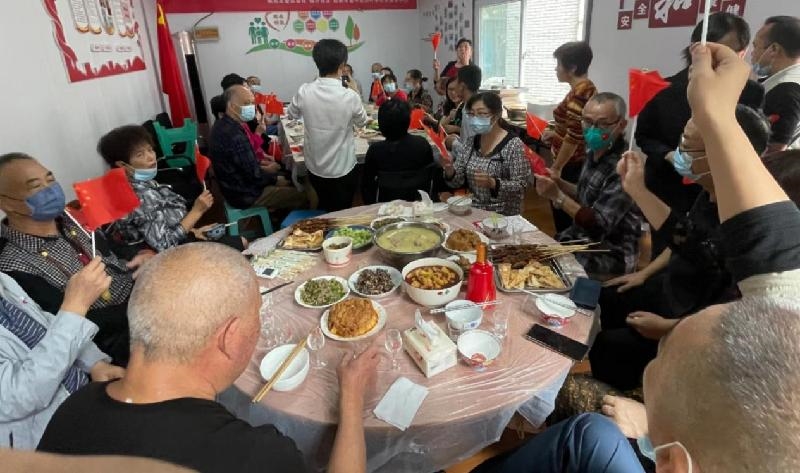 银沙社区在多民族共居小区金扉银苑举办“众品百家美味 口福天下佳肴”美食分享活动,以美食会邻里,建筑邻里温情。居民先在自家制作拿手菜,之后邀请院落居民在邻里之家进行菜品分享,并分享交流菜品制作方法。滋香四溢的回锅肉、鲜嫩多汁的冷锅兔及酸辣爽口的凉拌猪耳朵等四川代表名菜和甘香回甜的新疆烤馕饼、香味浓浓的烤羊肉串及糌粑、馓子等各族美食出现在团圆桌上,大家围坐一起述说着有了祖国繁荣的昌盛,才有如今丰裕富足的生活环境,并齐唱《歌唱祖国》,用最简单的方式践行共同团结奋斗、共同繁荣发展。