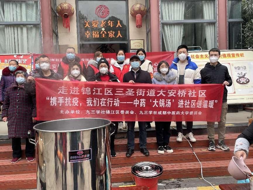 为推动社区科学防疫,进一步普及中医药文化,培育中医健康理念,2022年12月30日,九三学社锦江区委员会、九三学社成都中医药大学委员会携手走进成都市锦江区三圣街道大安桥社区,联合开展中药大锅汤送温暖活动。