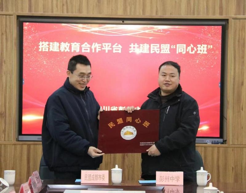 民盟“同心班”是民盟四川省委教育委员会和民盟成都市委教育工委共同形成的教育服务品牌活动,彭州中学“蓉城星力• 同心班”由民盟成都市委教育工委、民盟彭州总支联合发起,依托成都民盟教育工委专家团队,通过搭建教育合作平台,促进优质教育资源共享,支持县域教育均衡发展。“同心班”支持团队由盟内优秀中学教师组成,包括高中文科的全部学科的教师团队,对彭州中学的文科班教学进行对口支持,助力彭州基础教育高质量发展。