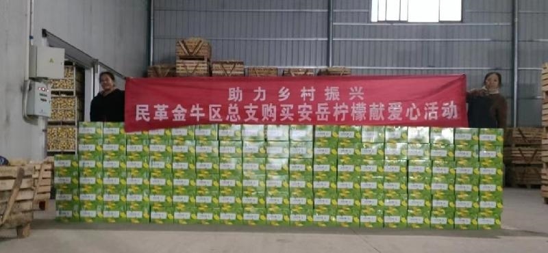 民革金牛区总支积极对接民革安岳县总支,购买1万余元安岳柠檬用于慰问总支全体党员和荷花池街道互助路社区留守老人、工作人员等,为总支党员和社区人员送上新春佳节问候的同时也解决了安岳县柠檬年底相对滞销问题,推进了“蓉城星力”——“金牛坝上结柠檬”主题工程实践创新项目落地落实。