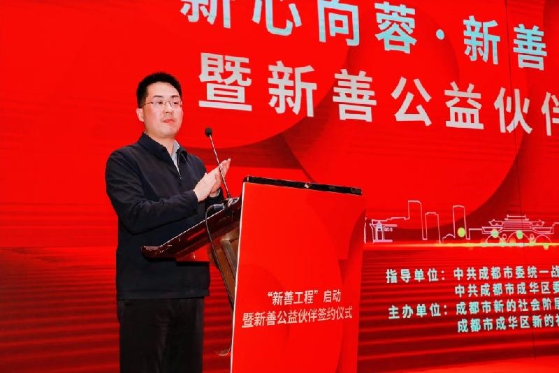 2月14日,在成都市委统战部、成华区委统战部的指导下,成都市新的社会阶层人士联谊会、成华区新的社会阶层人士联谊会在成都市成华区共同举办了“新心向蓉·新善工程”启动暨新善公益伙伴签约仪式。