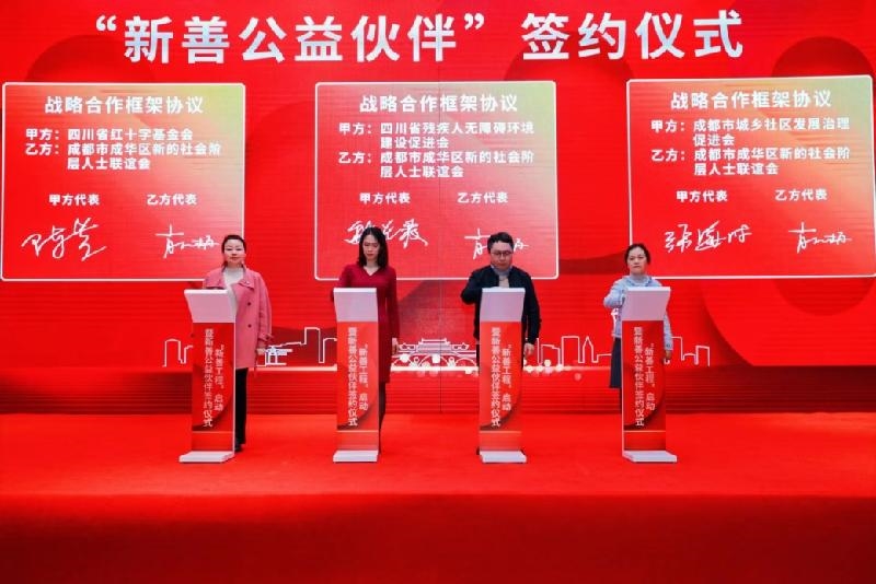随后,在与会嘉宾的共同见证下,成都市成华区新的社会阶层人士联谊会分别与四川省红十字基金会、四川省残疾人无障碍环境建设促进会、成都市城乡社区发展治理促进会等单位签订了系列合作协议。