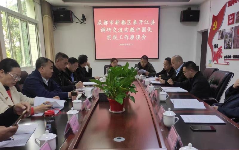 4月7日,成都市新都区委统战部副部长、民宗局长刘旭华带领调研考察组一行来达州市开江县调研宗教中国化实践及宗教场所商业化治理工作,并座谈交流。