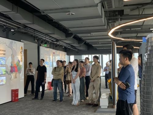 与会嘉宾和企业家参观锦江云端会客厅,了解锦江软件园的布局规划。