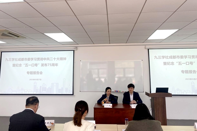 近日,九三学社成都市委组织召开学习贯彻中共二十大精神暨纪念“五一口号”发布75周年专题报告会,社市委专职副主委卢勤,社市委常委、委员、部分骨干社员参加会议。