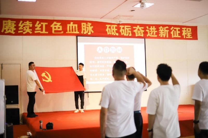 在重温入党誓词环节中,党支部书记乐先兵带领新老党员、积极分子进行了重温入党誓词宣誓。“我志愿加入中国共产党,拥护党的纲领,遵守党的章程......”铿锵的语调、昂扬的精神,坚定的信念,宣誓出“庚续红色血脉 砥砺奋进新征程”的坚定决心。