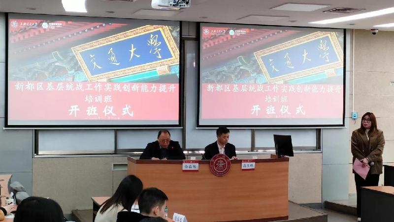 11月13日,新都区基层统战工作实践创新能力提升培训班在上海交通大学顺利开班。此次培训以统战工作实践创新能力提升为主线,专题解读习近平总书记关于统战工作的重要指示精神,突出服务经济社会发展主题,学习党的二十大后国家政治战略定位、经济发展趋势和实践创新工作经验等。通过学习培训,引导统一战线广大成员不断增强服务经济社会发展的能力,为全面建设新发展理念的国家中心城市、落实我区“一心三区”战略部署贡献统战力量。