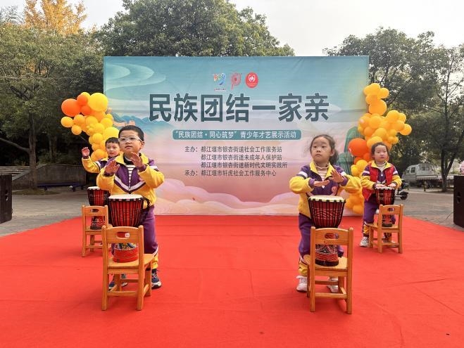 为深化民族团结教育,促进辖区内儿童的文化交流和才艺展示,近日,都江堰市在朝阳社区举办了一场以“民族团结 同心筑梦”为主题的儿童才艺展示活动。