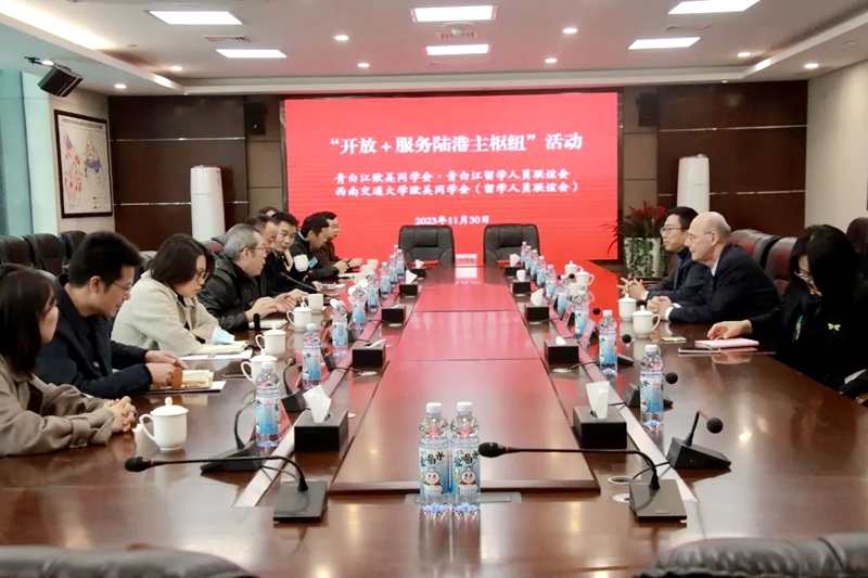 11月30日,区欧美同学会联合西南交通大学欧美同学会开展“开放+服务陆港主枢纽”活动。西南交通大学党委常委、统战部部长汪铮,区委常委、统战部部长张彬,德国杜伊斯堡-埃森大学运输系统和物流系主任Bernd Noche,区委统战部、区经科信局以及区国贸和物流局、港管委、班列公司等相关负责同志参加活动。
