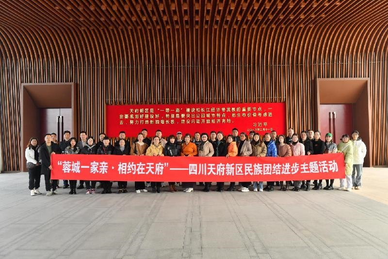 民族团结和谐曲在天府新区持续奏响。这一年,天府新区以铸牢中华民族共同体意识为工作主线,创新实践“蓉城一家亲·相约在天府”民族团结进步主题活动。组织各族群众参观考察天府新区规划厅、天府CBP城市展厅,召开座谈交流会听取各族群众关于进一步做好新区城市民族工作的意见建议。推广提升安公社区“五六民族工作法”,开展“共植石榴树”“民族团结文艺汇演”等活动,嵌入式城市社区民族工作被《中国民族报》(总第2285期)头版头条关注报道。积极参与“中华民族一家亲·同心共筑中国梦”——四川省第二届大中小学铸牢中华民族共同体意识校园舞台剧展评活动并获各类奖项8项。