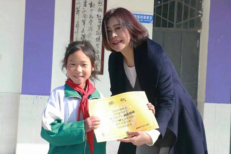 张平宜为大营盘学校的孩子颁发奖状