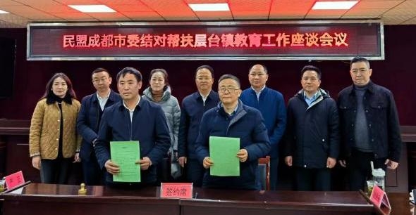 民盟成都市委会一行还与毕节市七星关区、层台镇教育相关负责同志进行了座谈,双方就帮扶工作细则、对接合作机制、资金使用安排等方面内容做了更加细致的商讨。座谈会上,成都市泡桐树小学蜀都分校与层台镇中心小学、前进小学,成都市中和中学与层台镇中学,签订了结对帮扶协议,确定了未来双方在管理、教学和科研方面的合作内容和模式。