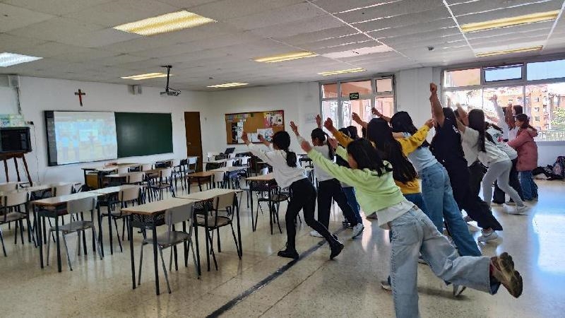 在云课堂上,石笋街初级中学校的音乐教师徐丁艳荣进行了《民族文化—揭秘羌族萨朗舞》这一有着中国民族特色的授课。生动有趣的课堂内容不仅让现场的同学们兴致勃勃,屏幕另一头的西班牙中文学校的同学们也都兴趣盎然。中西学生们共同认认真真地模仿老师的每一个动作,多维度感受羌族萨朗舞的独特美。