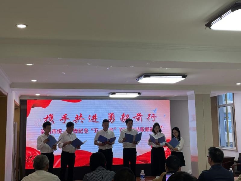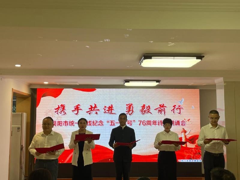 近日,简阳市统一战线纪念“五一口号”76周年诗歌朗诵会举行。市委统战部常务副部长、市民宗局局长曾涛出席,简阳市各民主党派、市知联会、市新联会骨干成员及优秀党外干部代表共40余人参加。