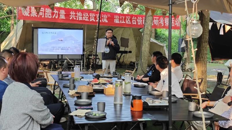 区台侨联调研组来到橙行林间川台青年创新创业基地,深入了解温江区搭建“一家两基地”青创服务平台情况,对基地凝聚在川台企台胞青年资源,加强青创项目引进和孵化、开展两岸青年研习培训等事项表示充分肯定。调研后召开座谈会议,区台联会长毕继仁、区侨联主席洪振原分别把台联、侨联团体建设目标、工作要点、全年活动安排等进行了部署,将台侨联“三制”促“三联”工作运行机制向台侨同胞进行了深入讲解,提出未来将持续为在温台侨胞和企业搭建服务平台、整合资源、发挥优势,不断扩大台侨联影响力,为助推温江经济高质量发展贡献力量。