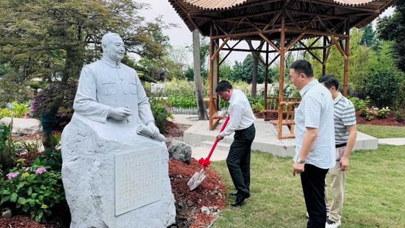 5 月 15 日下午,黄炎培雕像奠基仪式在民建成都乡村振兴委、青羊区总支和经管支部联建的“会员之家”举行。民建四川省委会副主委、成都市人大常委会副主任、民建成都市委会主委史红平,眉山市政协副主席、民建眉山市委会主委祝明洪,民建成都市委会专职副主委王萍、秘书长钟琪、副秘书长包立东,郫都区委统战部副部长兰由玉参加仪式。