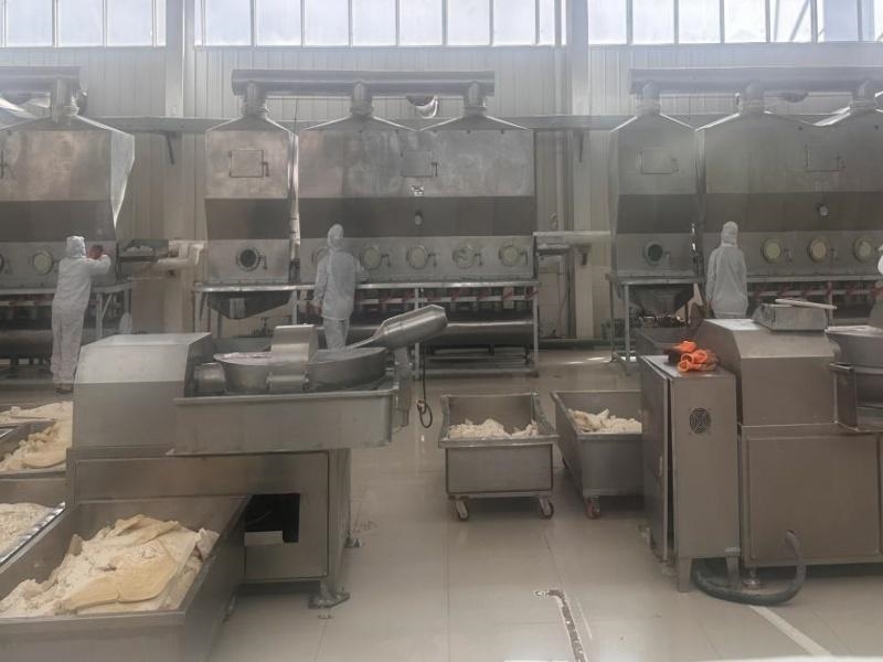走进位于炉霍县城边的炉霍县酪蛋白加工园区,一袋袋奶渣正在不断通过传输带从地面运到顶部,被工人整齐地码在最高一层,如小山一般堆在厂房。溶解、分离、点酸、脱水......生产车间里,身着无菌服的工人站在关键设备旁进行操作,将奶渣制作成具有丰富营养的酪蛋白。